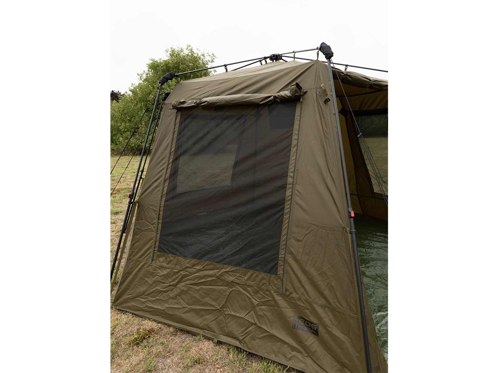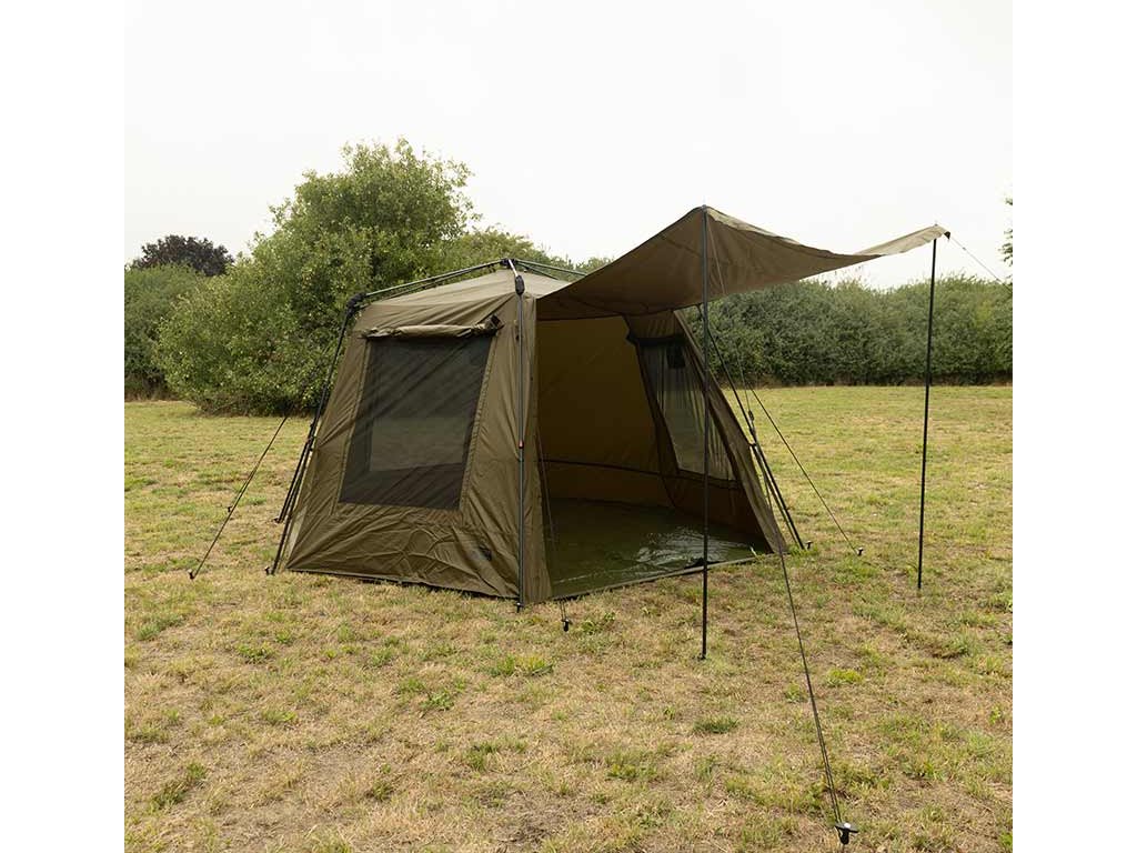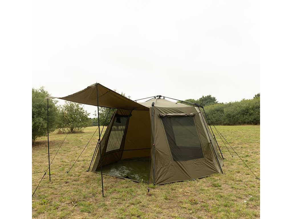Fox EOS Social Shelter XL idealan je za dulje ribolovne sesije i druženje na vodi. Jedinstvena sklopiva konstrukcija omogućuje jednostavno postavljanje, dok podesivi stupovi osiguravaju stabilnost. Ventilacija je izvrsna s tri mrežasta otvora i krovnim otvorom, a dodatnu praktičnost nude mrežasti džepovi na ulazu i kuka za vješanje lampe.