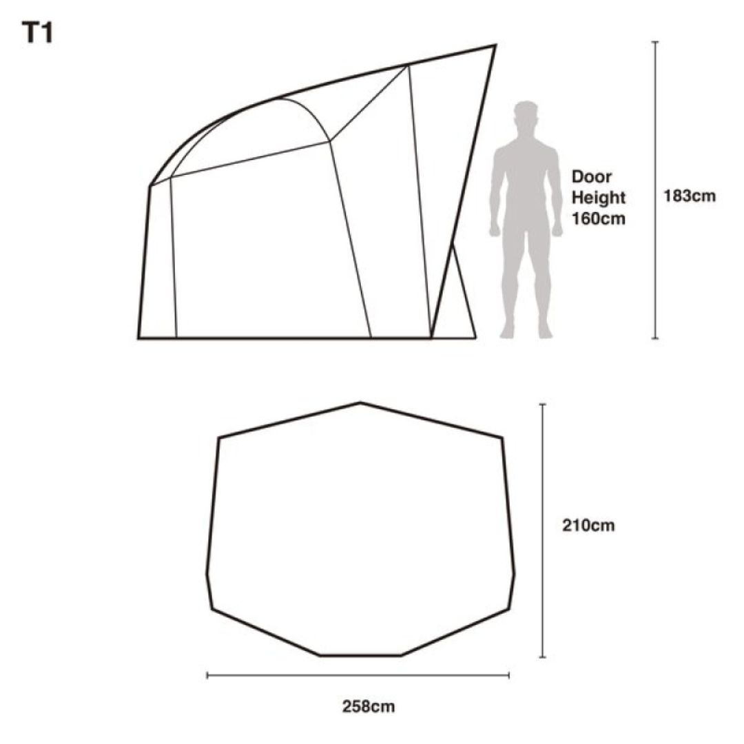 -Sveukupno: 183 cm (v) x 258 cm (š) x 210 cm (d)