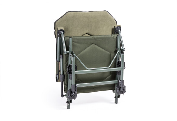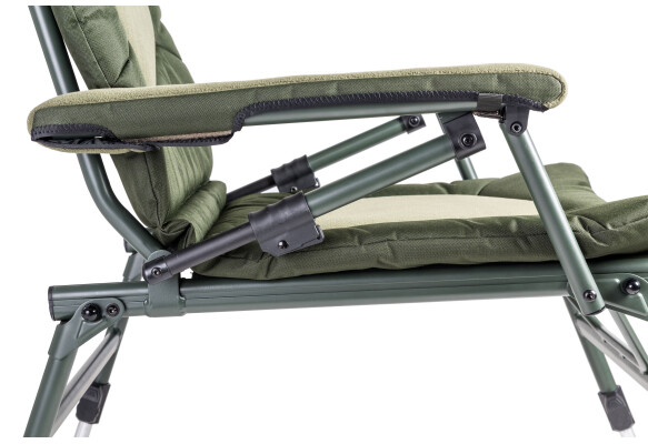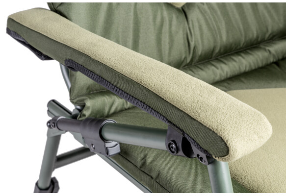 Luksuzna, velika, stabilna, udobna i profinjena ribička stolica do posljednjeg detalja. Tako bismo u nekoliko riječi mogli opisati ovu masivnu stolicu s četiri teleskopske noge, opremljenu automatskim sustavom za produljenje nogu i robusnim sustavom pozicioniranja naslona s preciznim podešavanjem kuta. Sjedalo i naslon izrađeni su od madraca koji domišljato kombinira Mivardi dizajnerske elemente s anatomskim oblikovanjem i maksimalnom udobnošću. Tome pridonosi i novi materijal presvlake s optimalnom krutošću i većom izdržljivošću. Meko podstavljeni jastuk veličine king size također je nevjerojatan. Kut nagiba podešava se pritiskom na gumbe na bočnim osloncima. Nasloni za ruke standardno su opremljeni mekim navlakama od visokokvalitetnog flisa.
